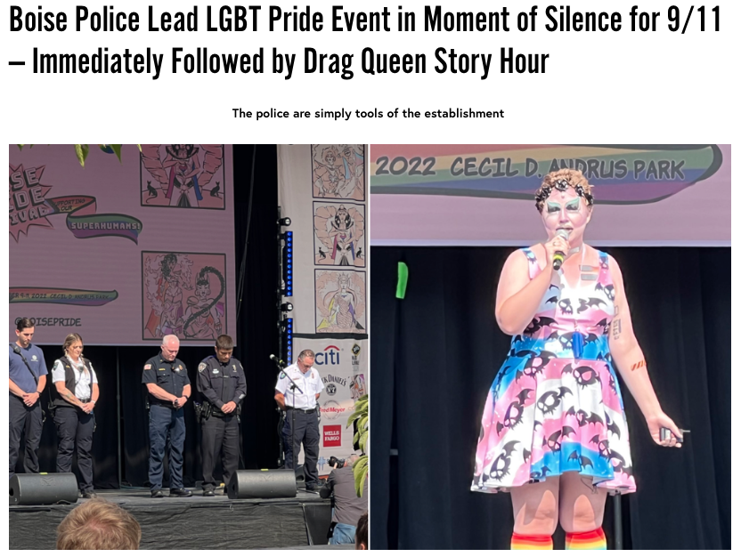 During the now infamous “Pride in the Park” event in Coeur d’Alene this past June, the Police stood by and watched as men, dressed as women, danced provocatively on stage for children.