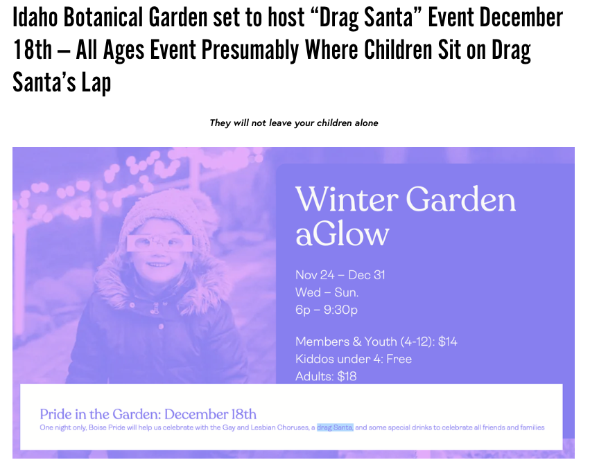 Boise Pride Activists and Idaho Antifa (a distinction without a difference) were left out in the cold on Sunday evening during the “Drag Santa” event at the Idaho Botanical Gardens.