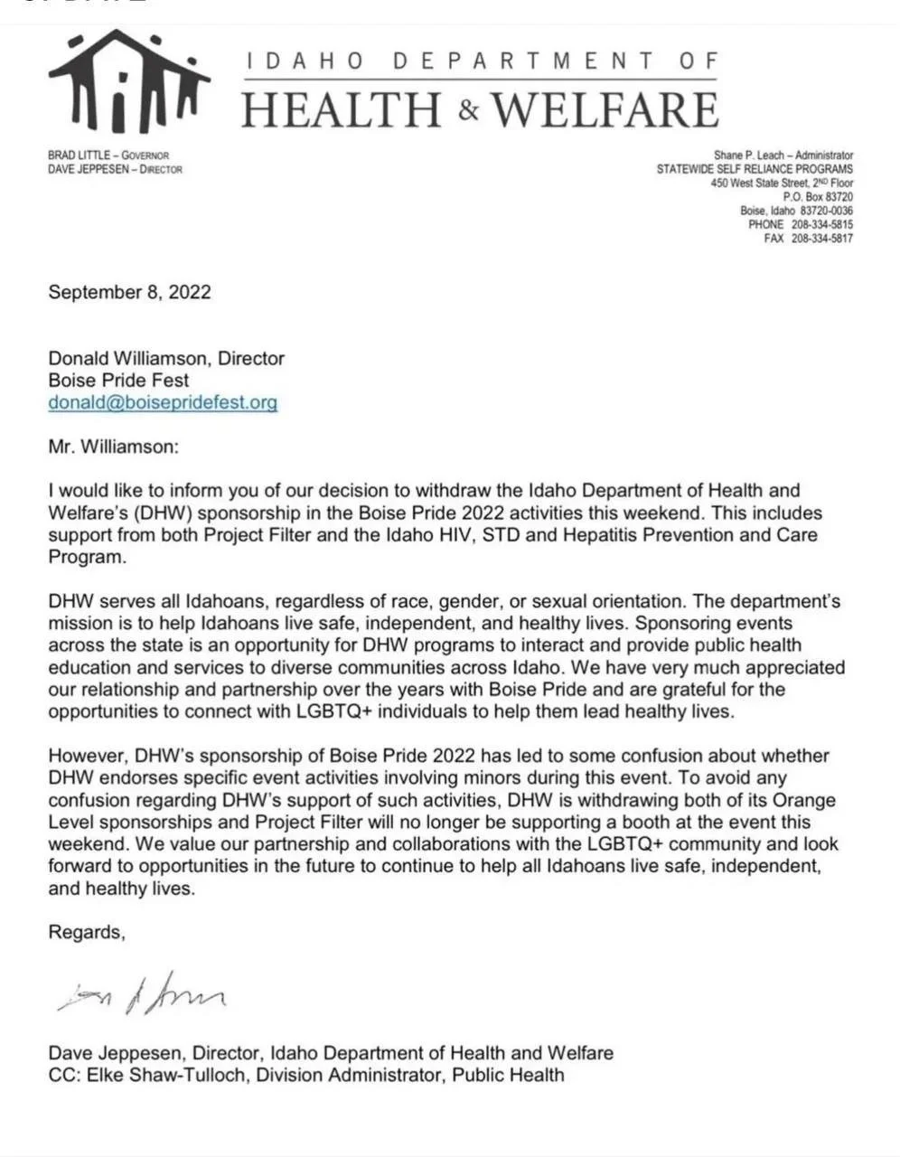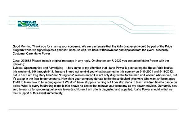 The Idaho GOP Chairman, Dorothy Moon, issued multiple statements, pressuring sponsors to drop off of the event, and for voters to pressure their legislatures.