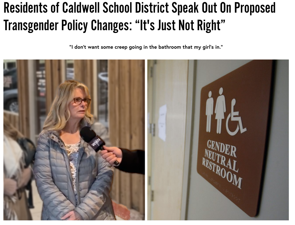 Caldwell School District has been mired in controversy over new policies on "Gender Identity” that the board was preparing to implement. The policies are widely opposed by members of the community, and provoked an outcry from concerned parents and residents of Caldwell, Idaho at the January meeting of the Board of Trustees.