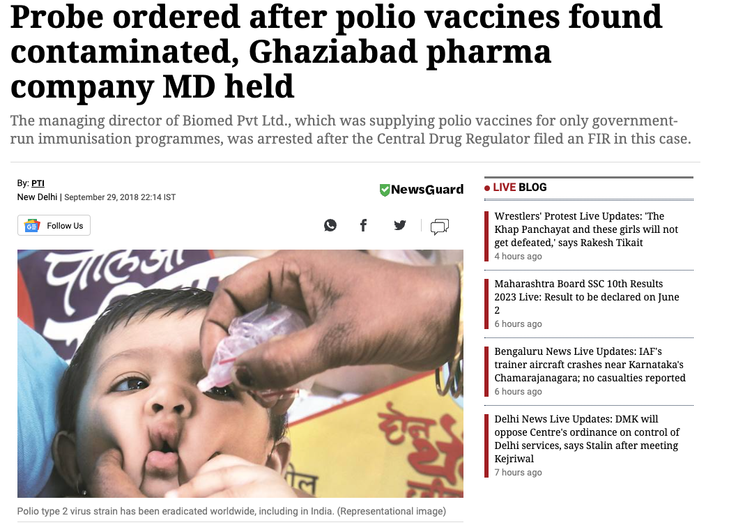 That vaccine caused horrible problems in India, and its use was subsequently banned. The owner of the company that manufactured the vaccine was arrested by Indian authorities, after tainted vaccines infected the children they were trying to inoculate, leaving them paralyzed.