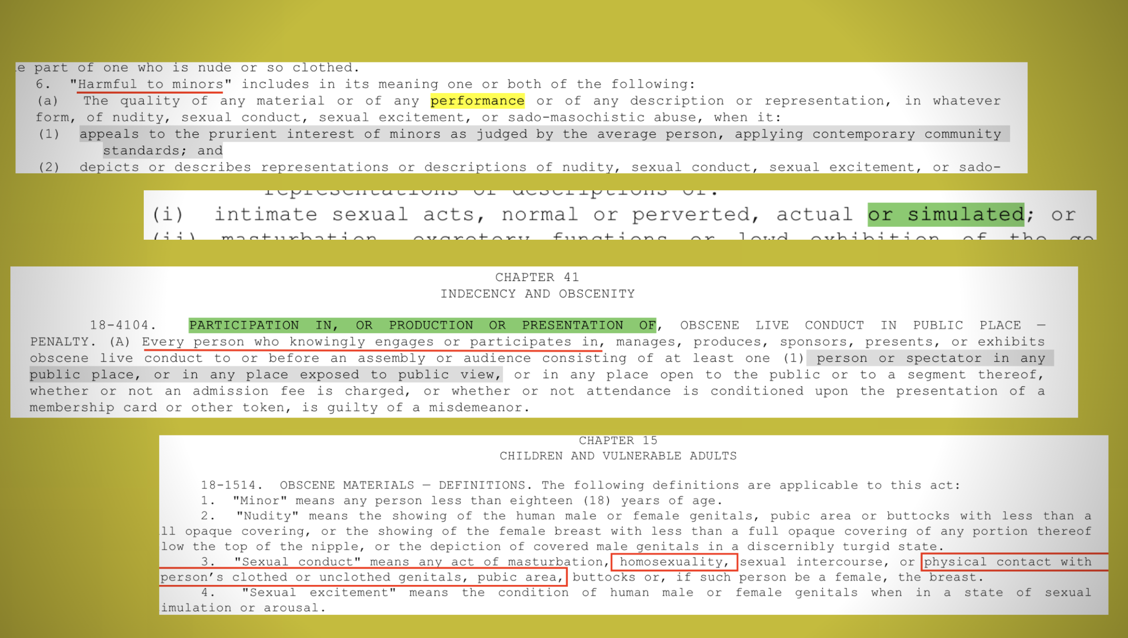 The order states that public display of homosexuality in the presence of minors is considered “sexual conduct” — falling under the umbrella of Title 18 Chapter 41 Indecency & Obscenity.
