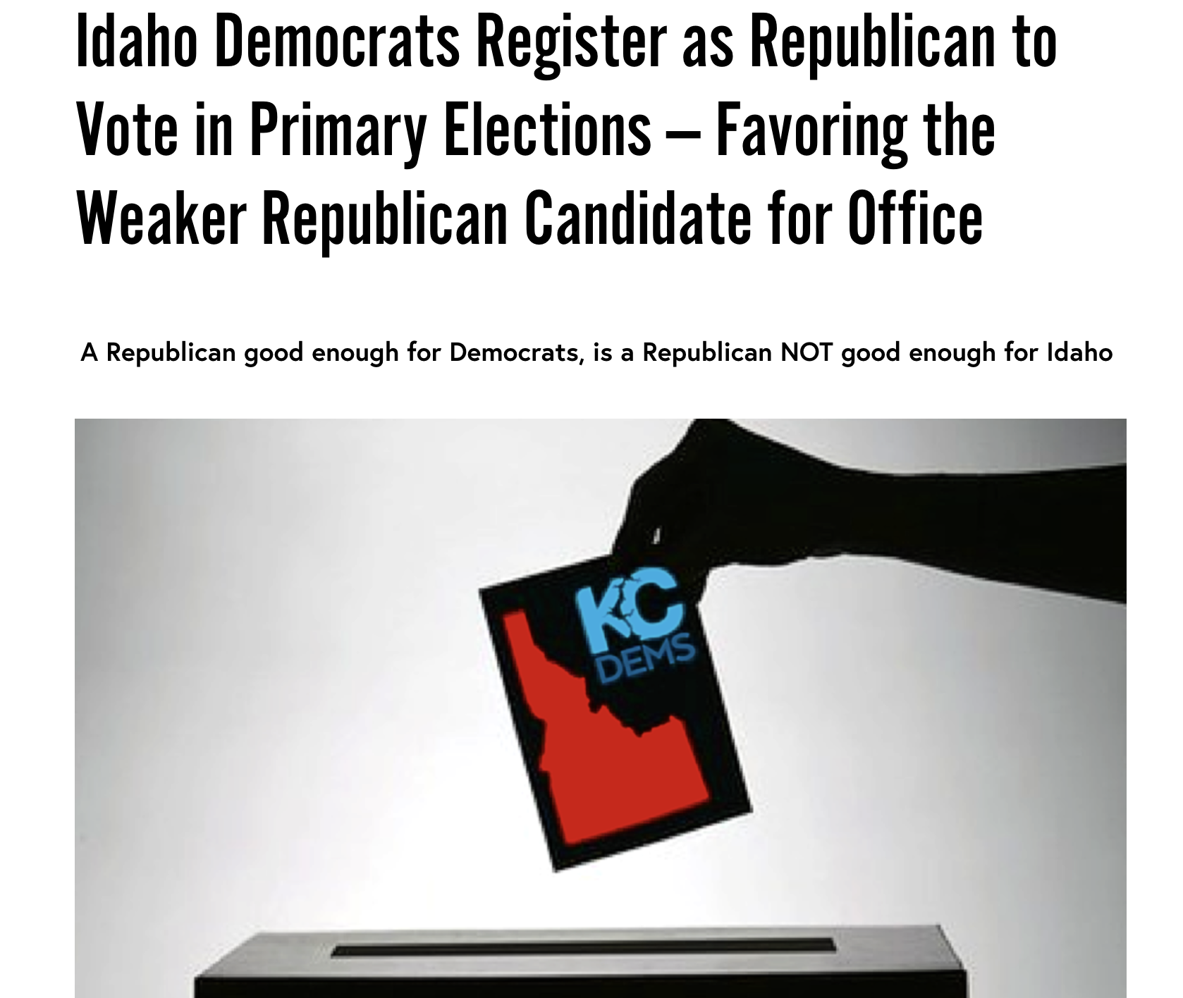 As previously reported, Idaho democrats have made it tradition to switch political affiliation to Republican in order to vote in Idahos closed primaries, effectively subverting the democratic process, ensuring ineffective Republicans win office.