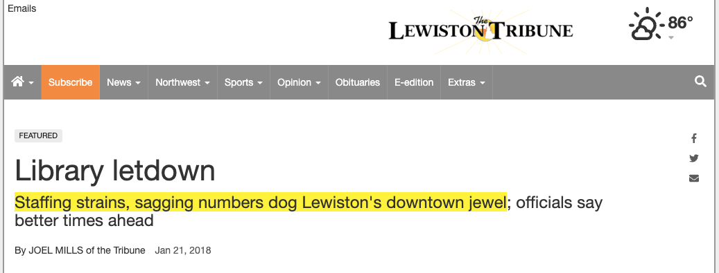 Circulation was down: “Lewiston’s circulation in 2016 was 20.8 percent lower than it was four years earlier.”