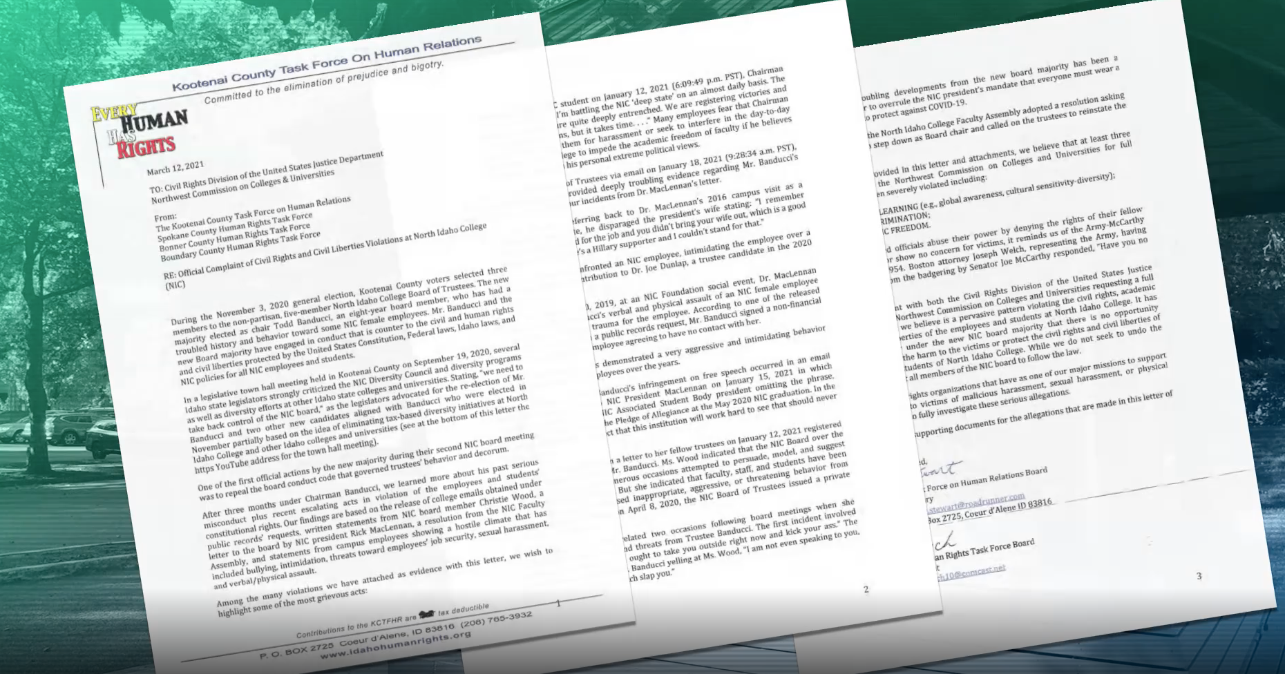 Wood, who is a sitting Coeur d’Alene City Council member, and the president of the far-left non-profit, the Kootenai County Task Force on Human Relations, started her assault on our beloved community college in earnest on March 12, 2021. Wood’s non-profit organization, in direct violation of North Idaho College’s policies, wrote a letter of complaint to the college’s accrediting agency, the North West Commission on Colleges and Universities or NWCCU.