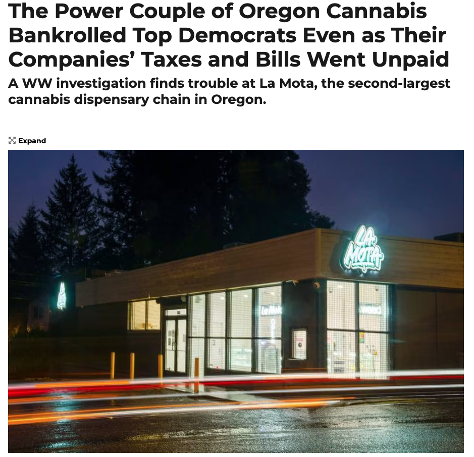 And that’s to say nothing about what the corporations that *own* these dispensaries actually do with their revenues. Take for example this article published last month by the Willamette Weekly, that shows that one of Oregons biggest pot shops not only hasn’t paid its taxes, but they also were big-time donors to the Democrat party.