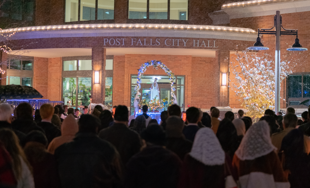 On Thursday December 8th, over 500 Catholics, accompanied by a dozen priests and a bishop, braved the snow and ice to consecrate Post Falls, Kootenai County and the great state of Idaho to Jesus Christ.
