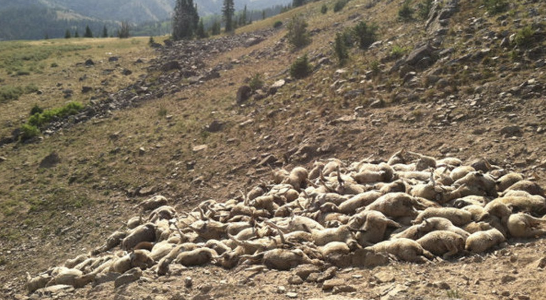 “The wolves scared the hell out of them and pushed them into that little canyon and piled them in there,” Shirts told KBOI. “They didn’t consume anything. The sheep just suffocated in the pileup and died. We work to make things good for those sheep every day, so it’s a shame to lose them.”
