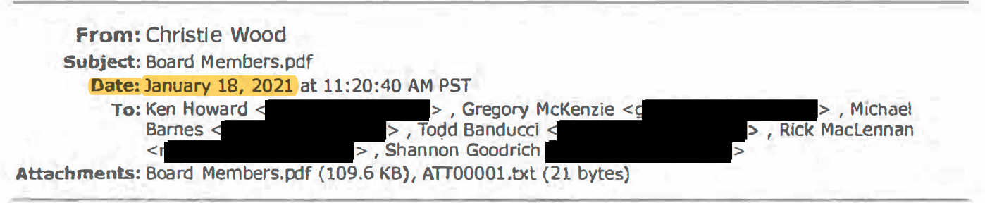 According to the “evidence” attached to the letter of complaint from the Task Force, these allegations were brought before the board on January 18, 2021.