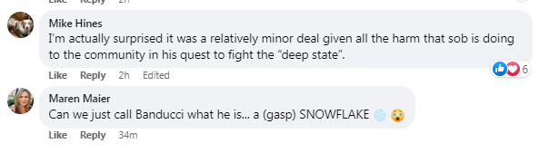 They have made the comments to the post private, but not before conservative members of the community saved them. They were overwhelmingly in support of the violent actions taken by Shallbetter against Banducci.