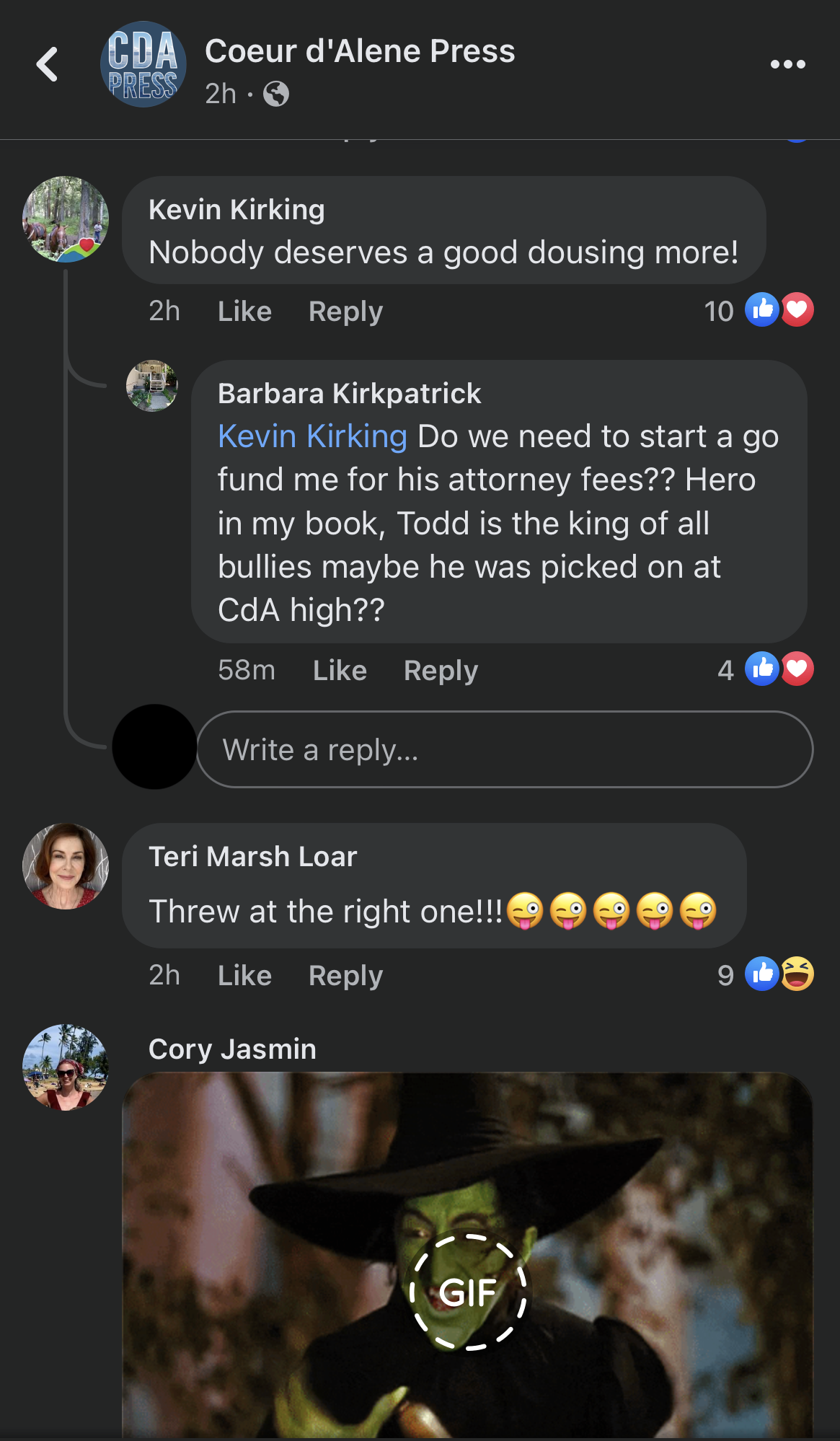 Comments on the CDA Press’ facebook post were just as bad, if not worse.