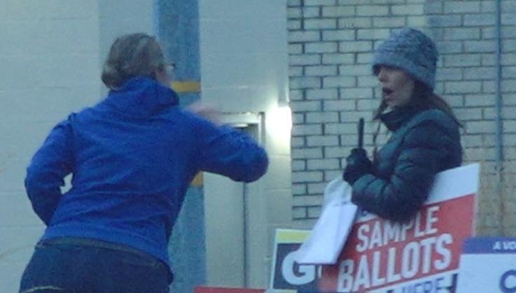 Hazel and her little gang of activists were seen setting up signs for Coeur d’Alene City Council Candidates Dan Gookin, Christie Wood, and City Council’s lone registered Democrat, Dan English before they began instigating Republican volunteers, and accusing the conservative candidates for office of being “criminals” and “abusers.”