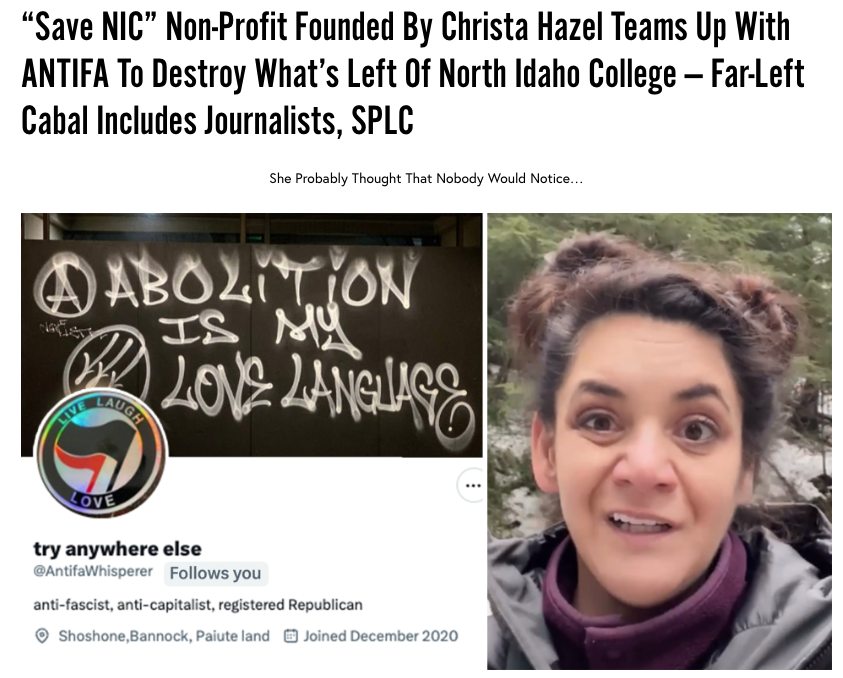 In an effort to get out ahead of the situation, Hazel tweeted out a statement from Christie Wood, the liberal Cd’A City Council incumbent with ties to hate groups and terrorist organizations like the SPLC & ADL.