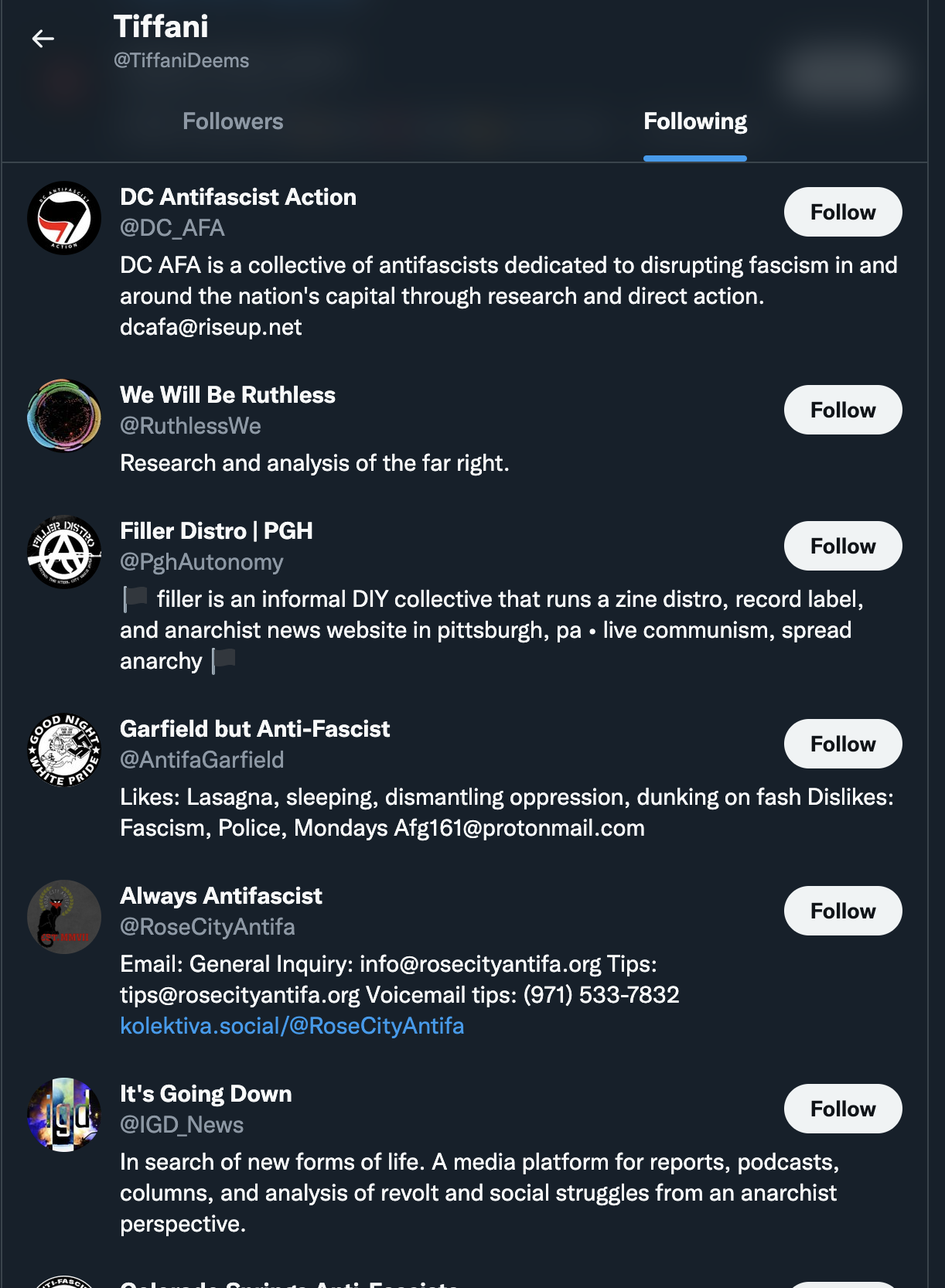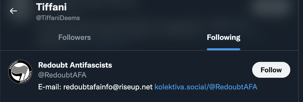 Tiffany not only converses with the extreme left wing group online, but follows many of their most prominent accounts, including many of which are located in Boise.