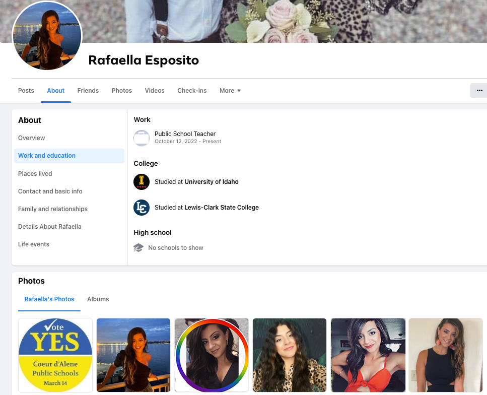 Rafaella Dockins goes by the name “Rafella Esposito” on Facebook.