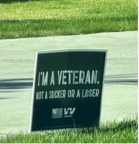 Outside of the Hayden home of Nick and Nikki Swayne is a sign that reads “I’m a veteran. Not a sucker or a loser,” a reference to an anti-Trump liberal trope that has been bandied about by the supporters of Kamala Harris, and Neo-Conservative McCain Republicans.