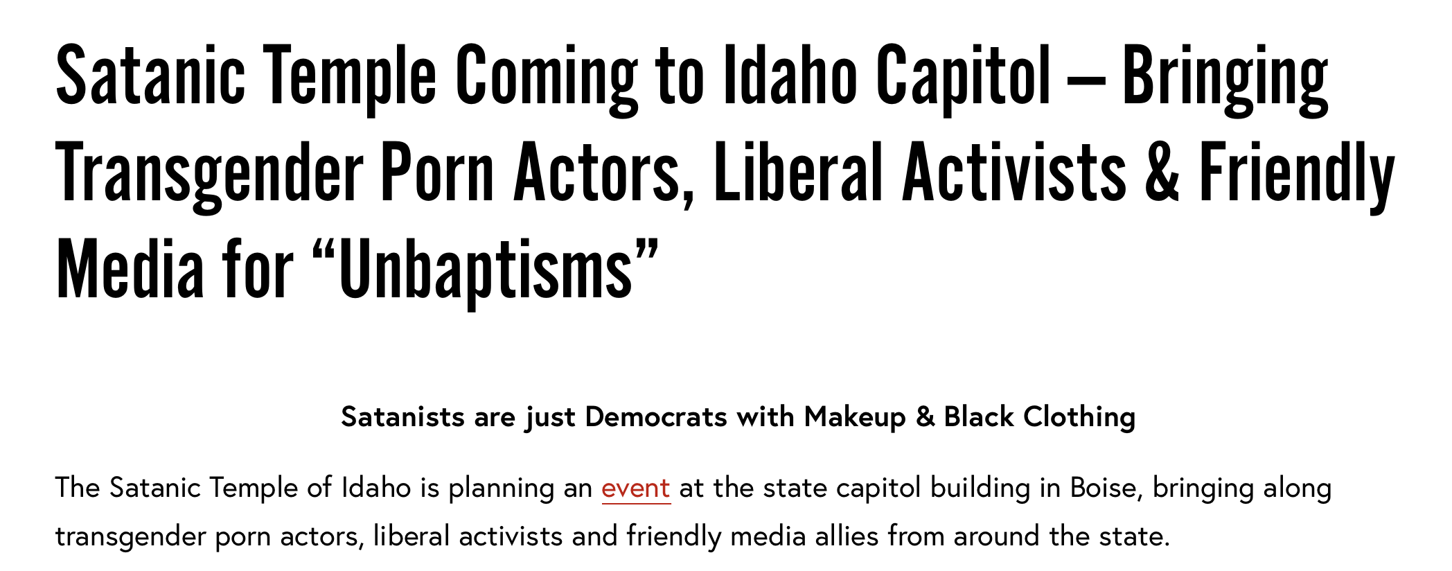 The Satanic Temple, which recently came to Boise to perform “unbaptisms” will be in attendance, telling children “satan loves you.”